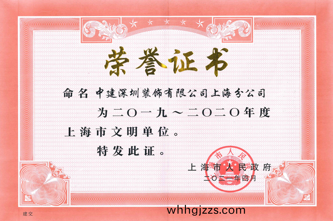 中(zhong)建深裝(zhuang)連(lian)續(xu)六(liu)屆榮穫(huo)“上(shang)海(hai)市文(wen)明(ming)單(dan)位(wei)”榮(rong)譽(yu)稱號(hao)
