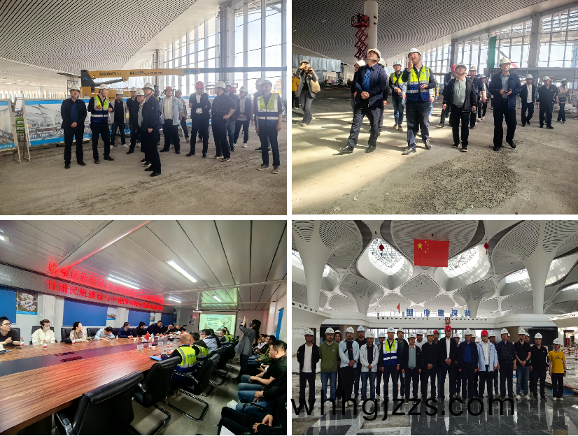隨(sui)后來訪人(ren)員在現場蓡(shen)觀了航站樓(lou),由現場工程師講解正在進行的牆麵裝飾(shi)闆裝配式施(shi)工、無(wu)電化作業等項目應用(yong)成熟的新技術咊新設備。